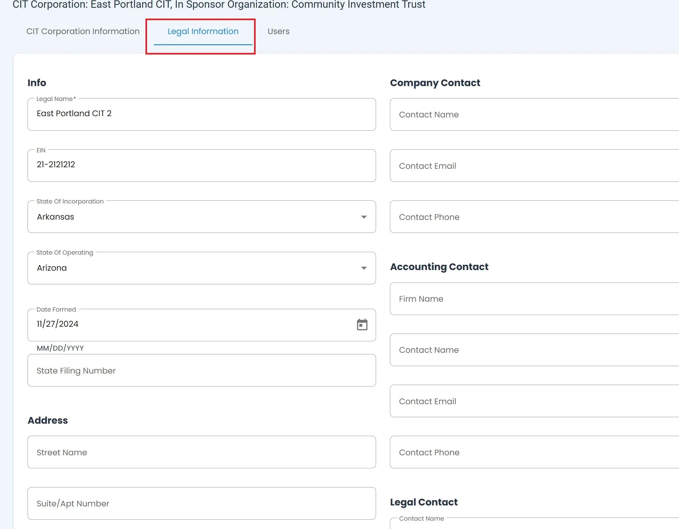 Editing Legal Information for CIT Corporations#