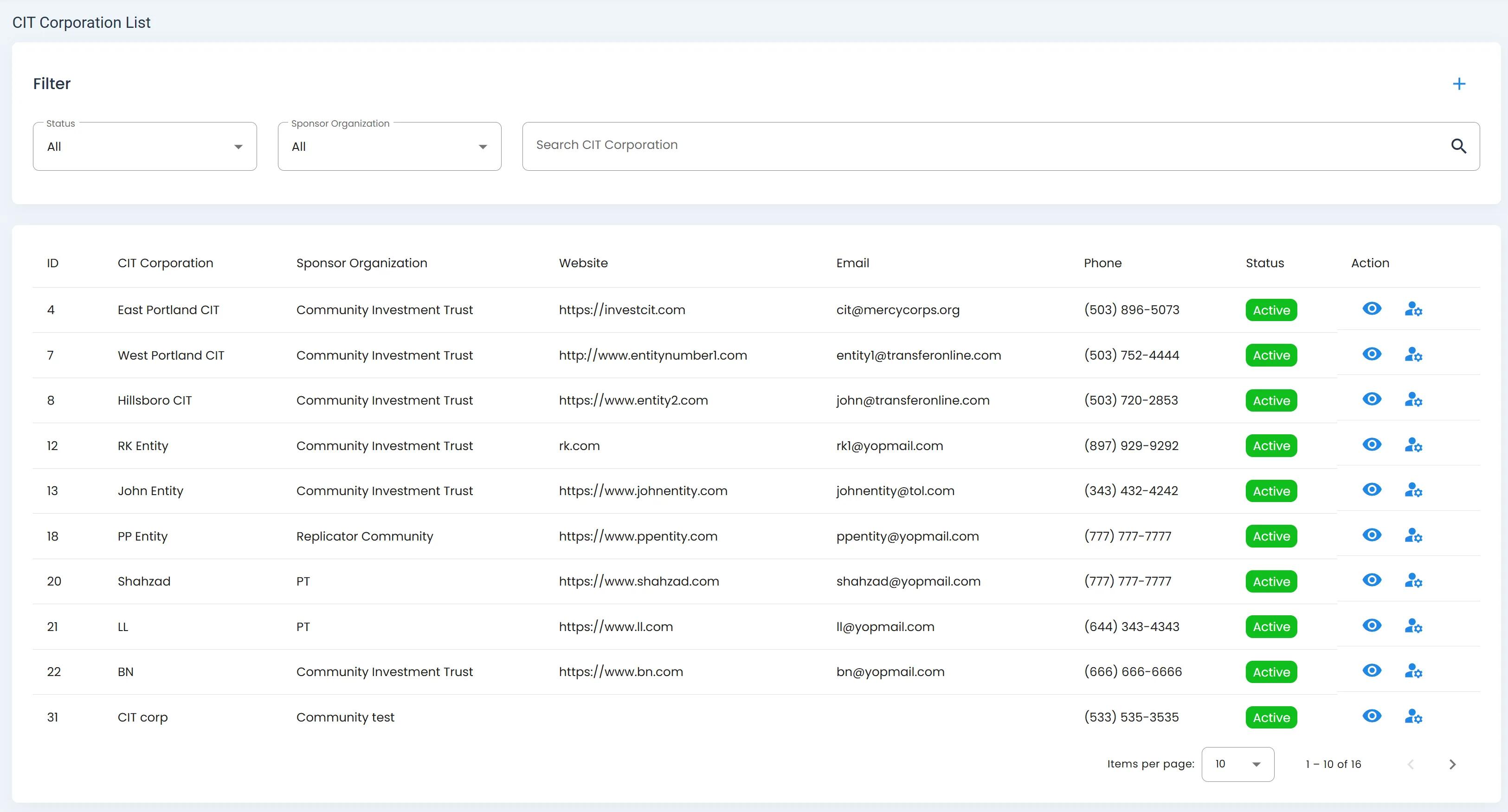CIT Corporations Section, Homepage, CIT Corporations List Table#