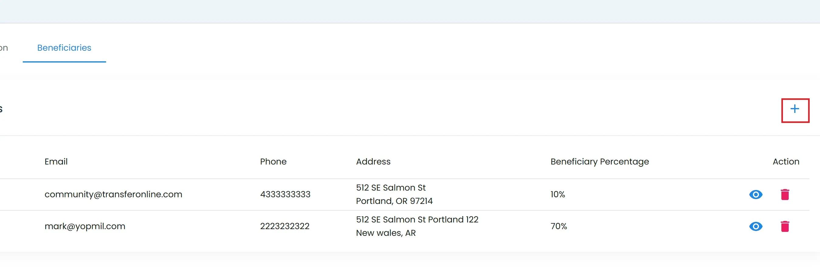 Click the plus icon [+] at the top right of the Table: Beneficiaries Table.