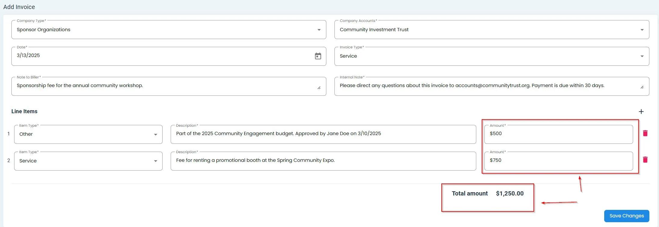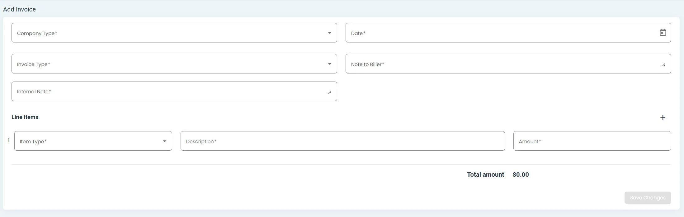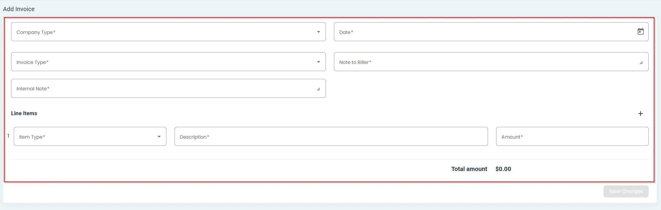 Item: All fields are requiredAll fields are required for creating a new invoice.