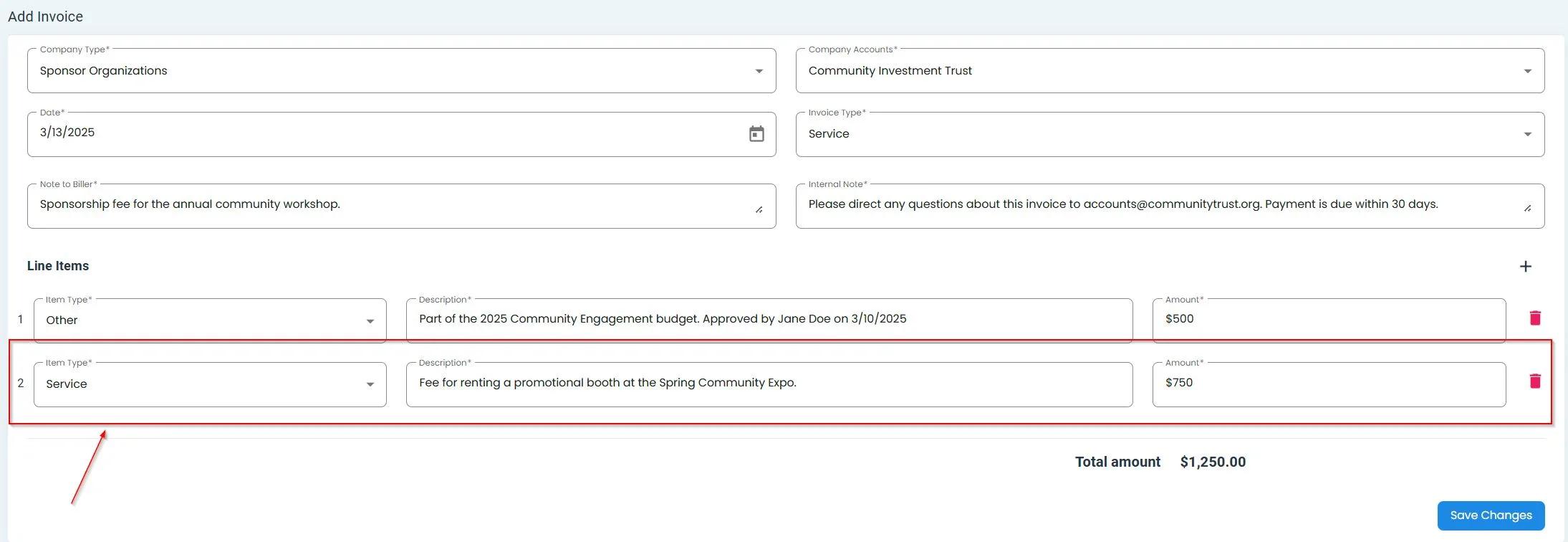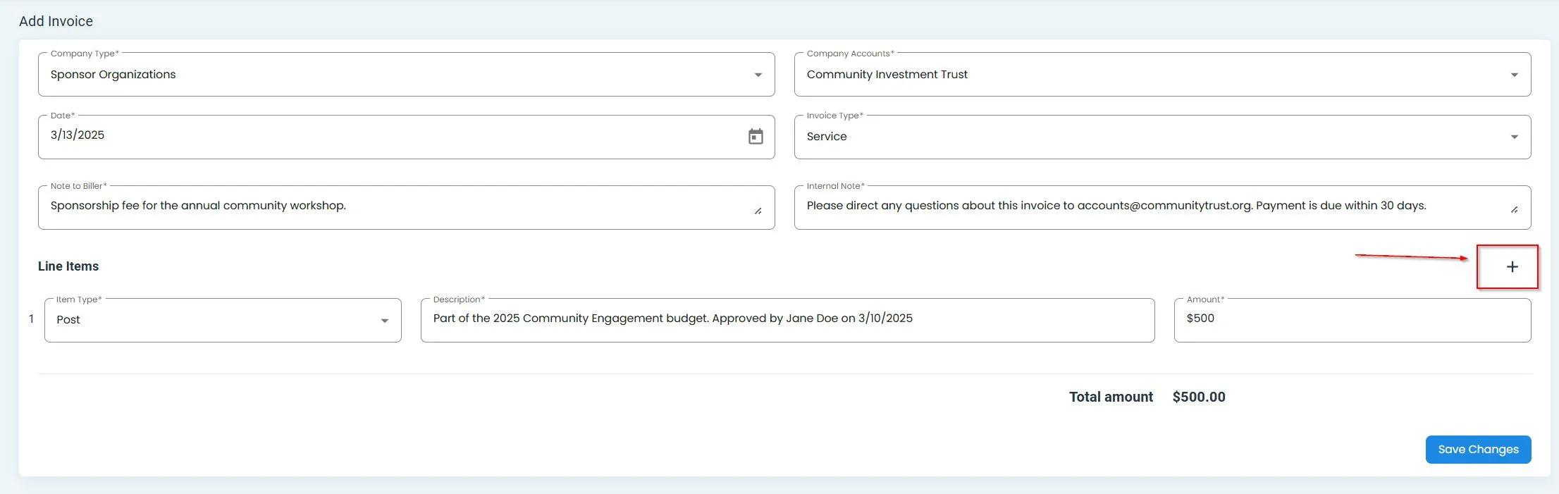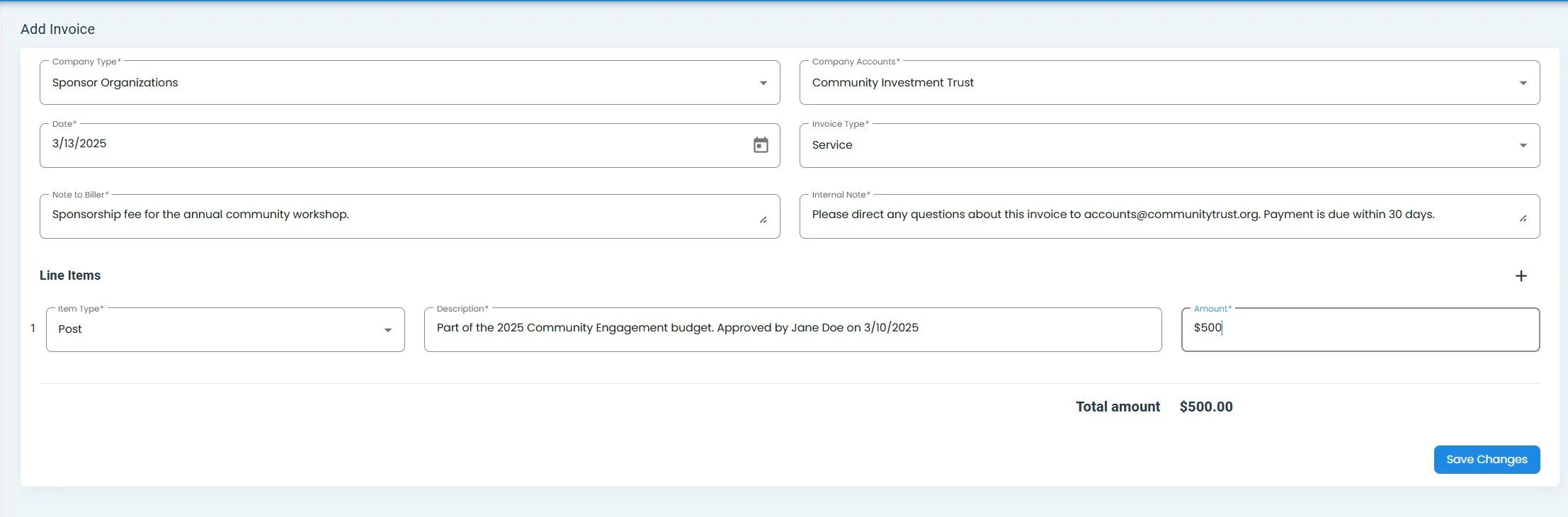 Item: All fields are requiredAll fields are required for creating a new invoice.