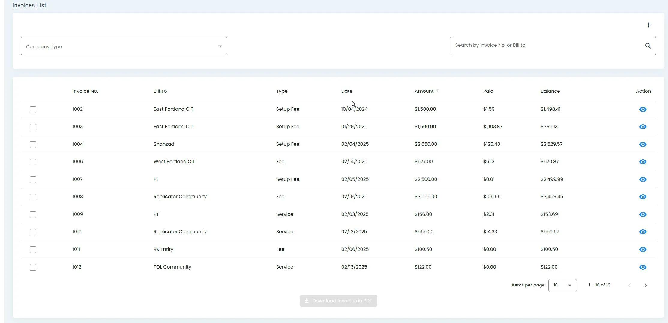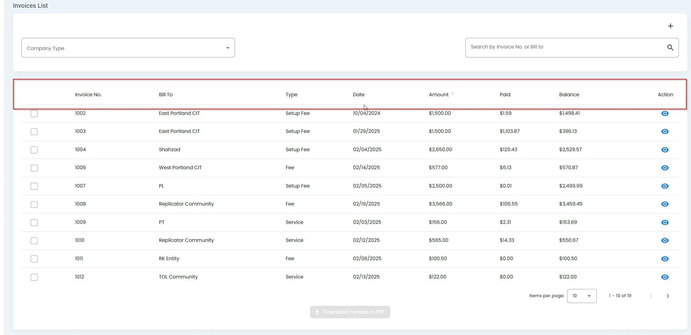 The Table: Invoices List table summarizes key details for each Item: Invoice, including: