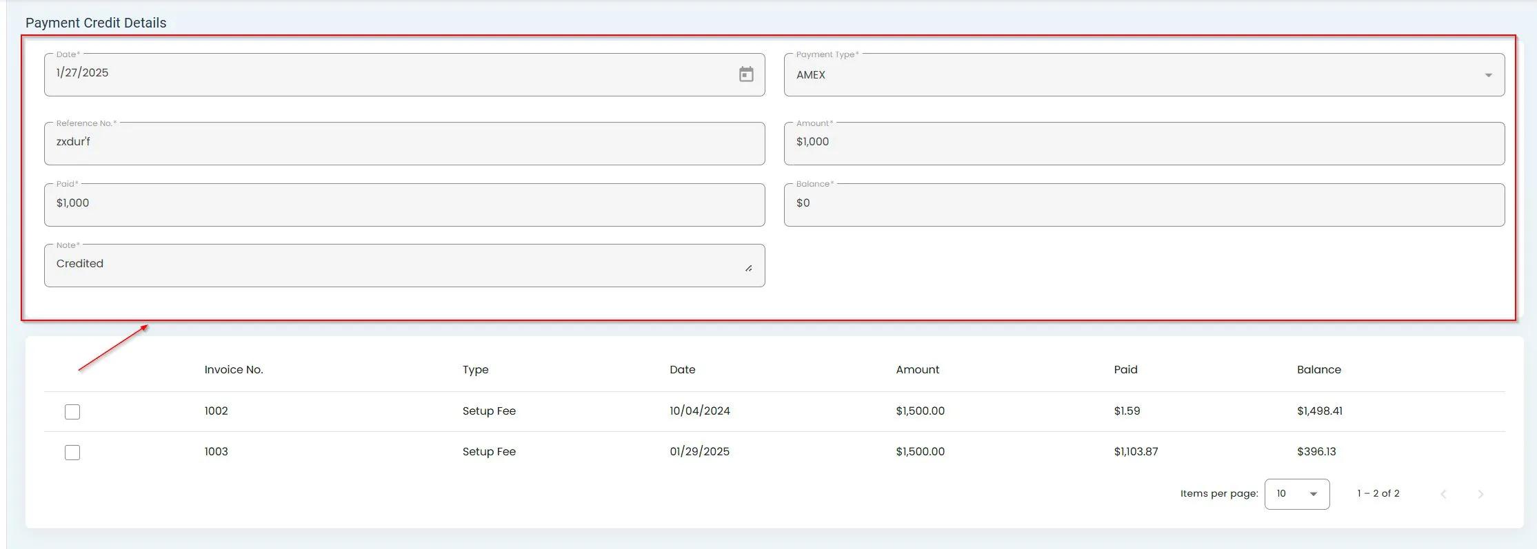 After clicking the View Details button, a new screen will open displaying all available information about the selected payment.