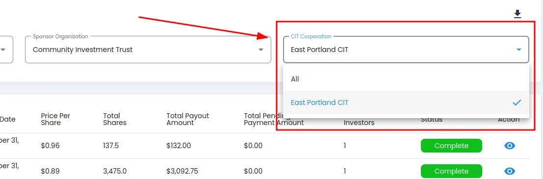 Action: Select the Item: CIT Corporation you want to filter by from the dropdown.
