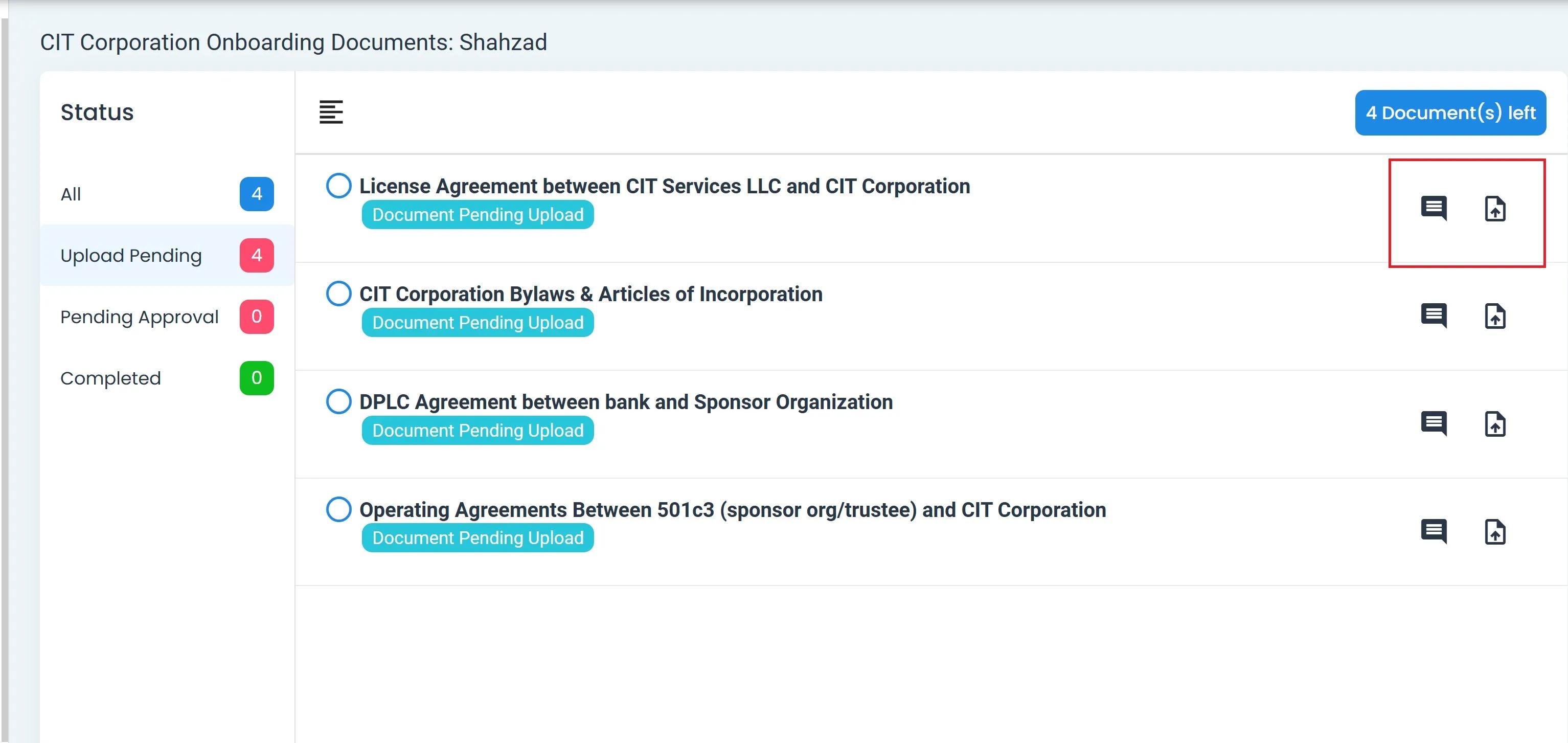 Upload Pending Status: Available Actions#