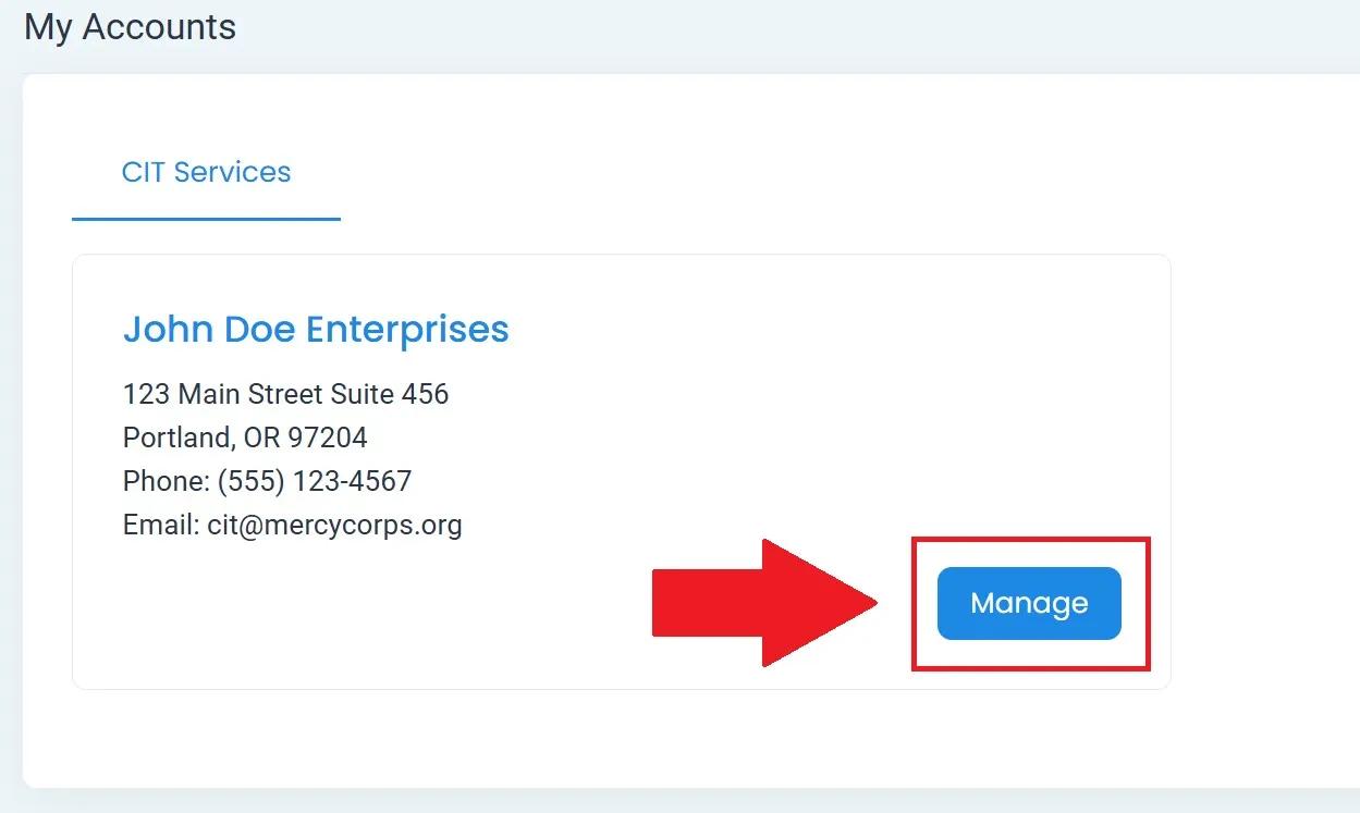 Select Manage next to the account name.